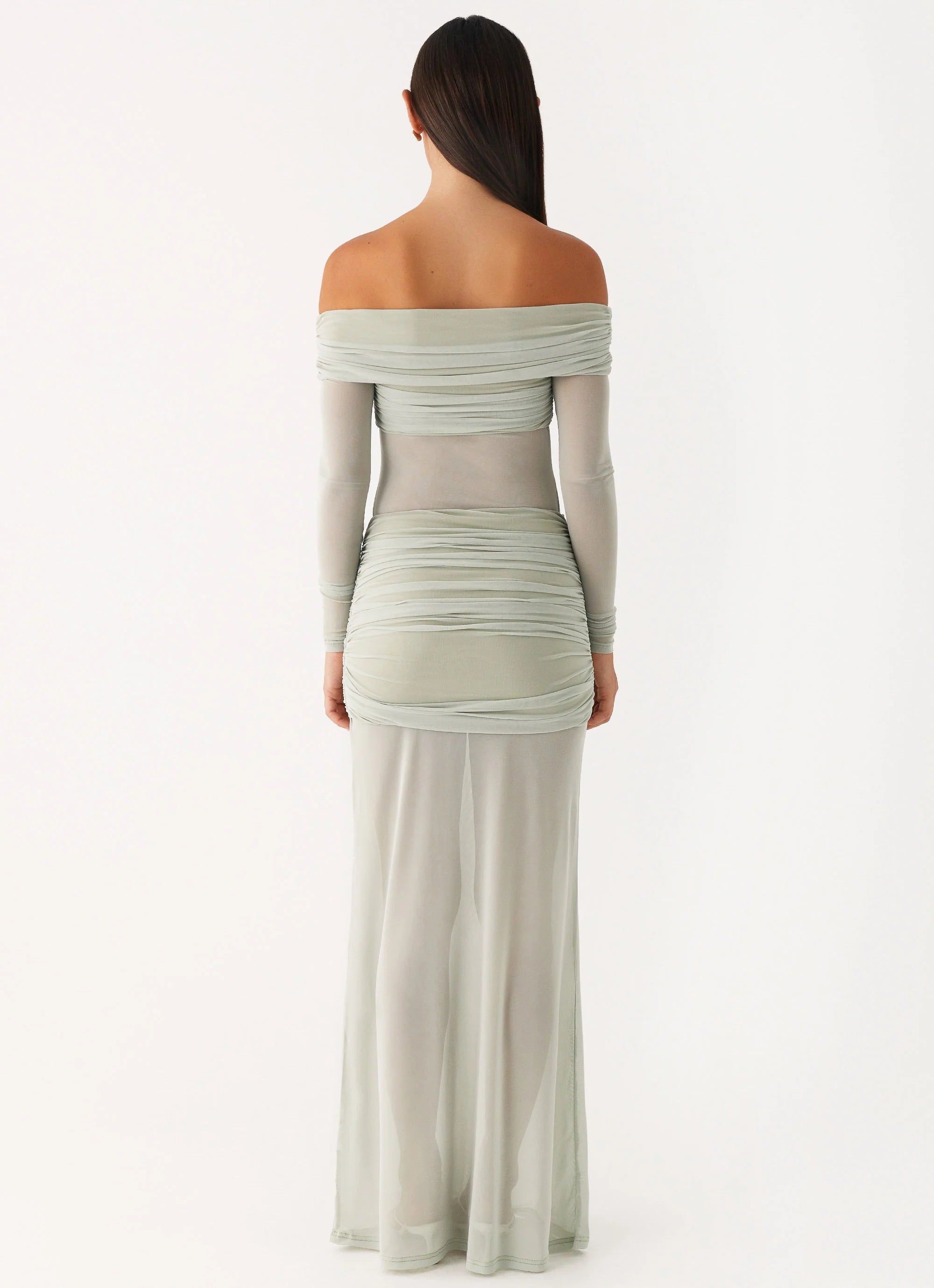 The Mercy Maxi Dress is sultry and sleek. Featuring an off-shoulder neckline, maxi length, and stretch mesh fabric, it moves effortlessly under golden skies, making every moment feel like a night to remember.