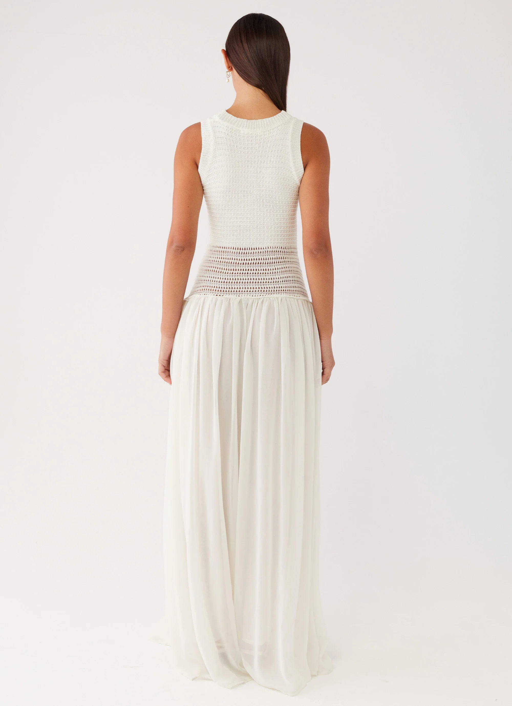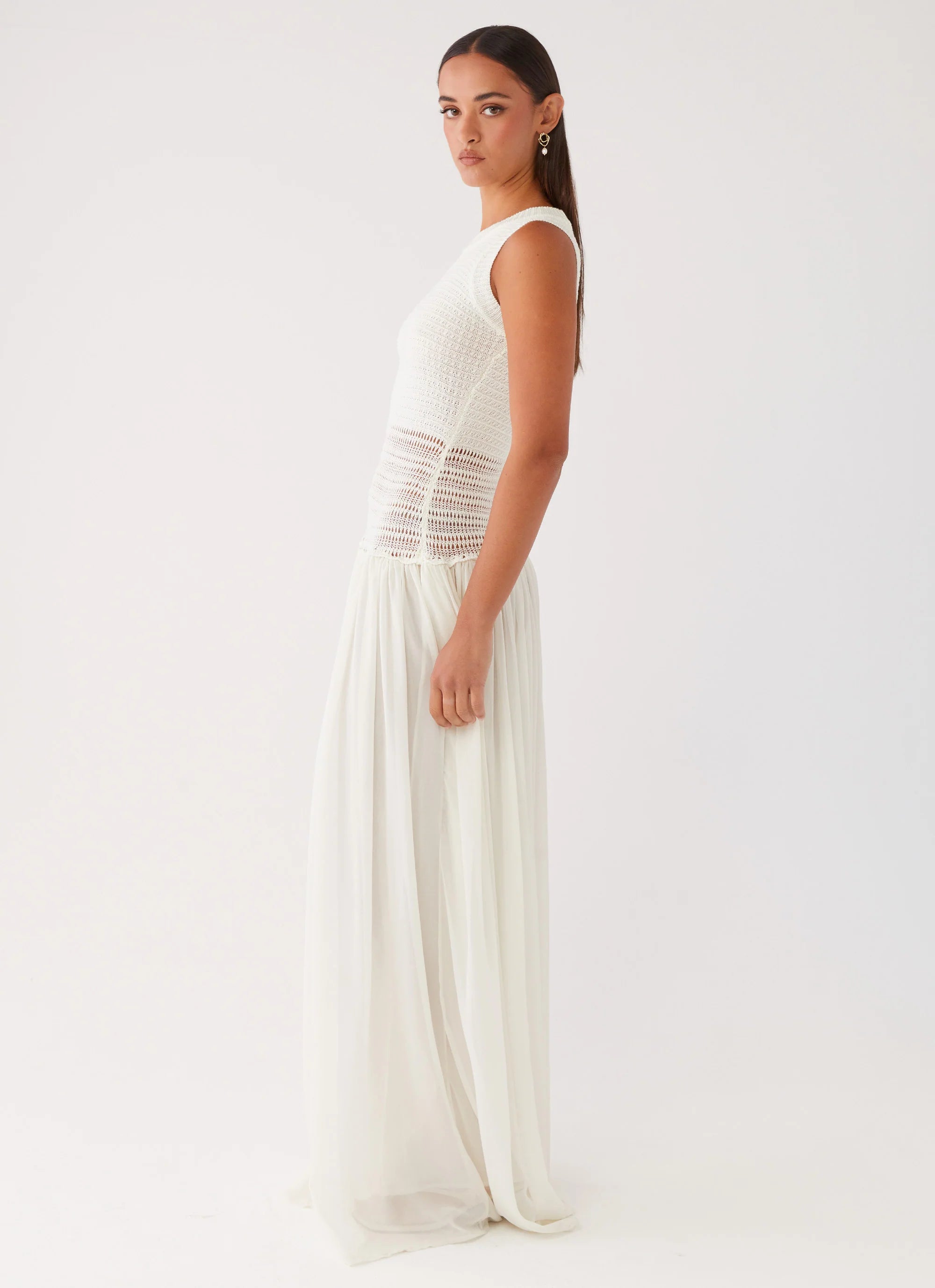 Stand out with the Off Grid Crochet Maxi Dress. Its high neckline and bodycon fit create a sleek, sculpted silhouette, perfect for making a bold statement on any evening. Ideal for those who love to shine under the night sky.