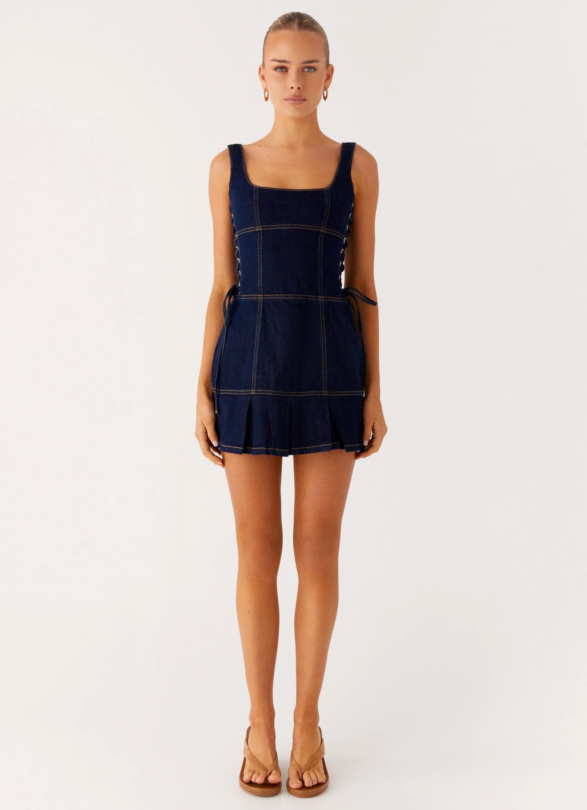 The Preston Mini Dress is a flirty take on structured styling. Featuring a square neckline with thick straps, side eyelet and tie detailing, and a pleated skirt, this unlined cotton mini is finished with a back metal zipper for a touch of edge.